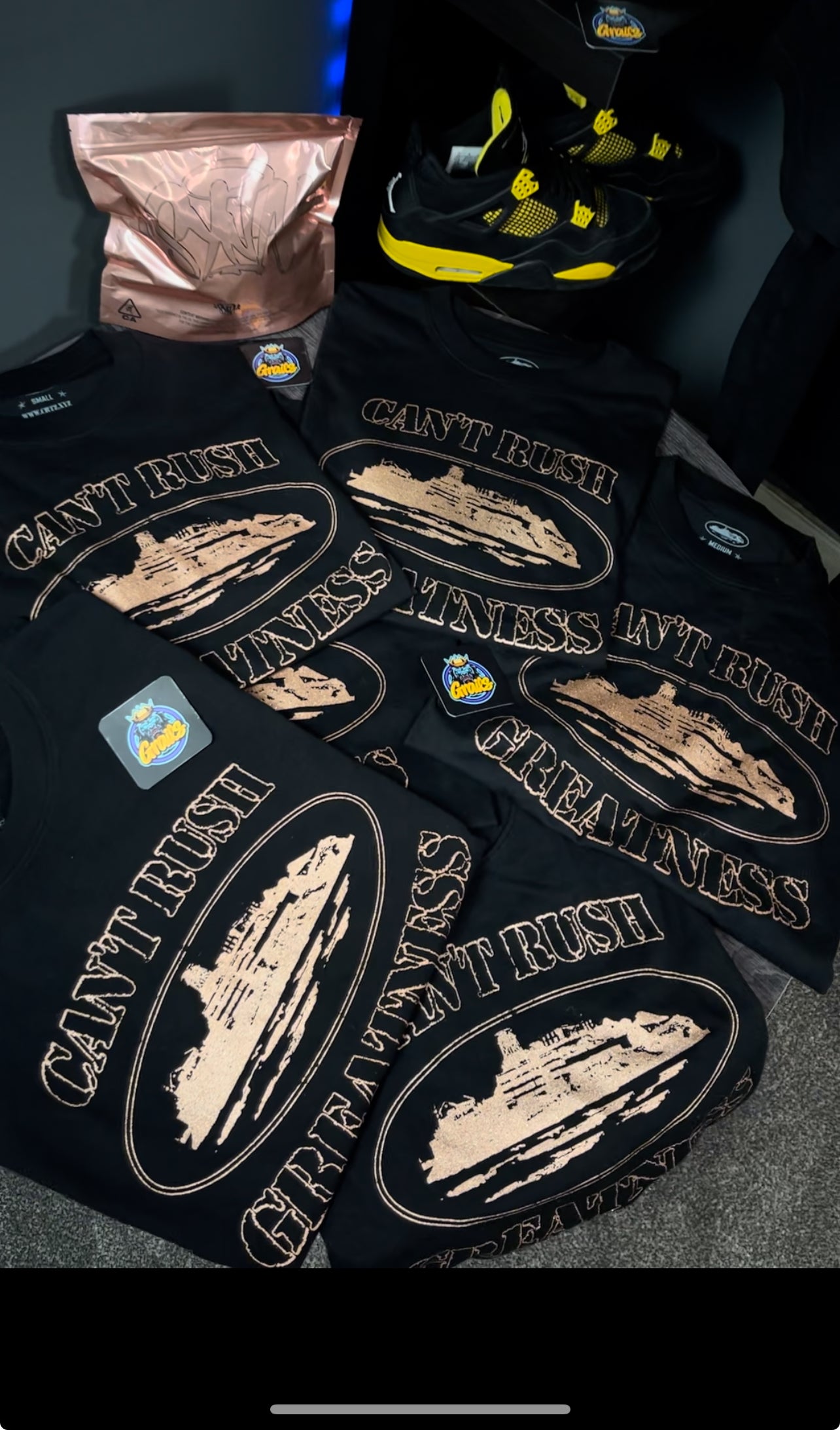 CORTEIZ X CAN'T RUSH GREATNESS TEE BLACK- GOLD